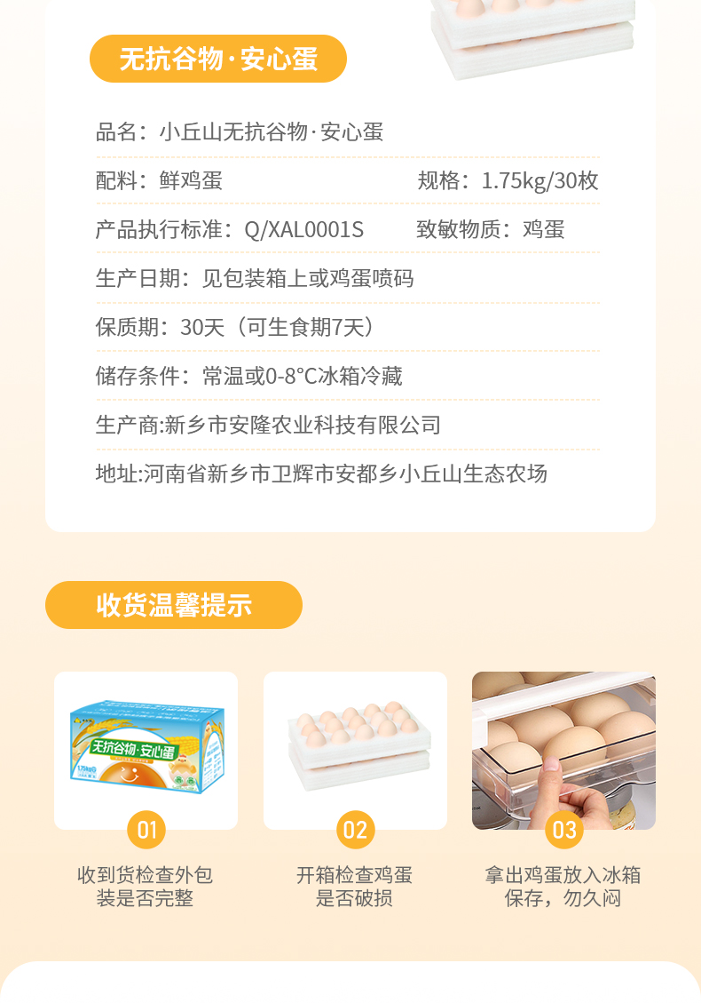 商品名称:小丘山谷物安心鸡蛋30枚(京东配送上门)