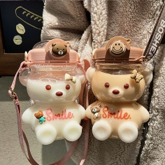 小熊水杯夏季卡通便携儿童塑料吸管杯可爱大容量杯子网红随手杯