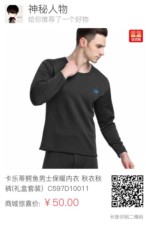 卡乐蒂鳄鱼男士保暖内衣 秋衣秋裤(礼盒套装)C597D10011