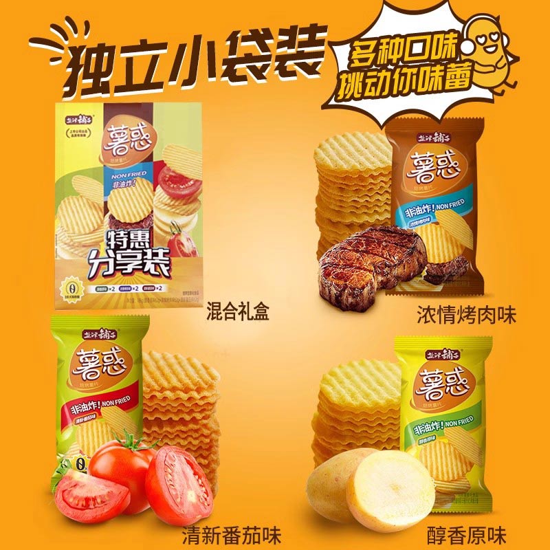 焙烤薯片混合口味 (醇香原味+浓情烤肉味+清新番茄味) 186g+原味鱼豆腐18g*20